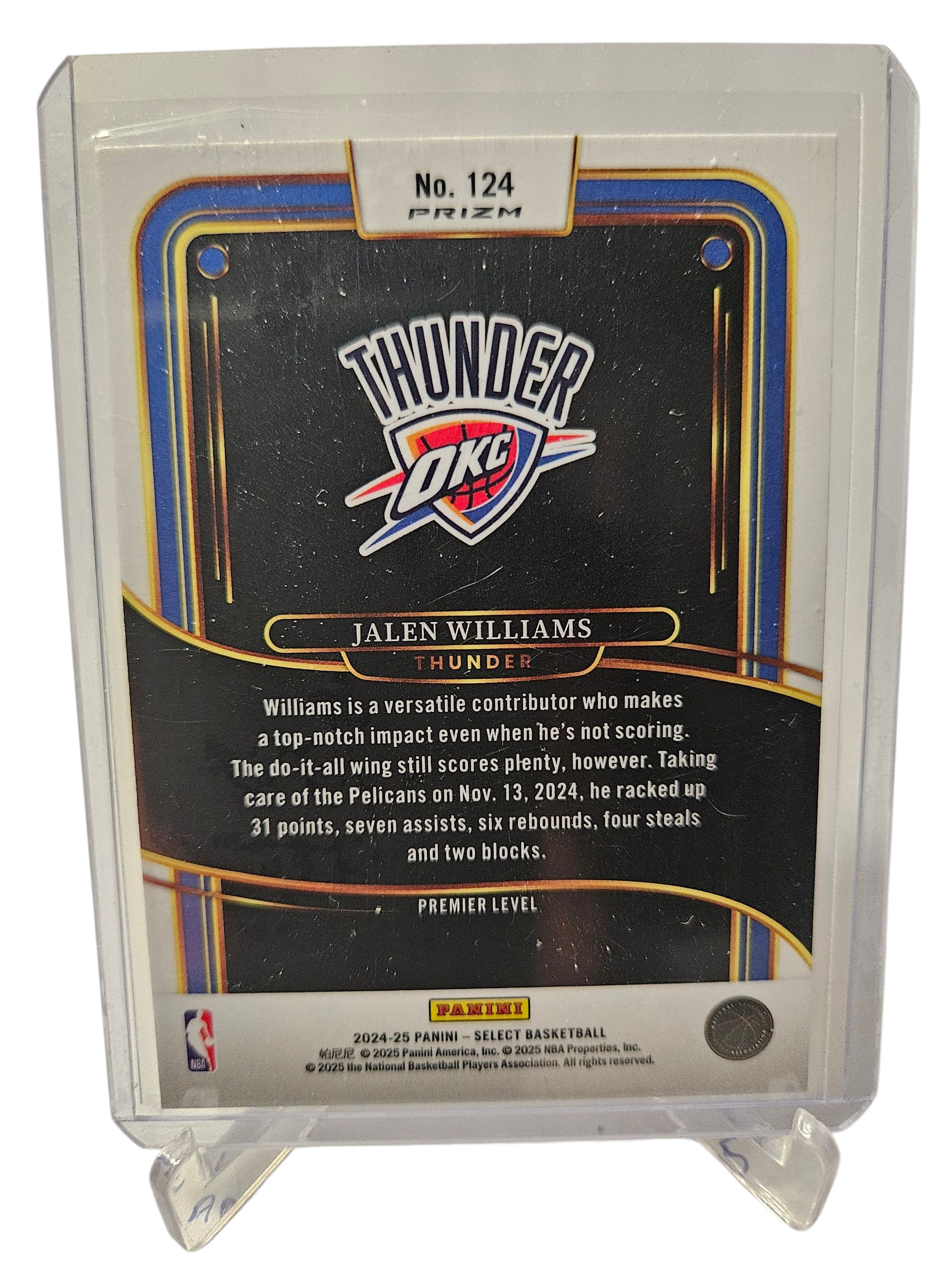 2024-25 Panini Select #124 Jalen Williams Premier Level Silver Prizm